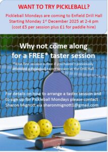 For details of how to arrange a taster session and to sign up for Pickleball Mondays please contact Sharon Mignott via sharonmignott1@gmail.com